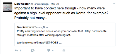 A 34 match unbeaten run when she has taken the first set sounds impressive for the 5th ranked player in the world, but as I wrote on Twitter, it is important to have context here.
